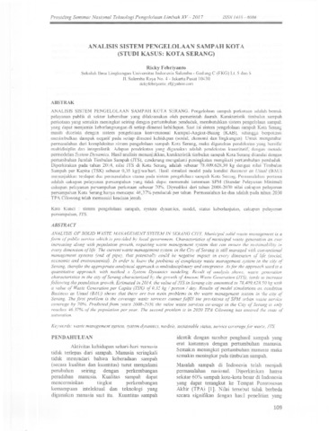 Ricky, Febriyanto Analisis sistem pengelolaan sampah kota (studi kasus: Kota Serang). Prosiding Seminar Nasional TeJ.:l101ogi Pengelolaan Limbah XV - 2017. pp. 109-120. ISSN 1410 - 6086