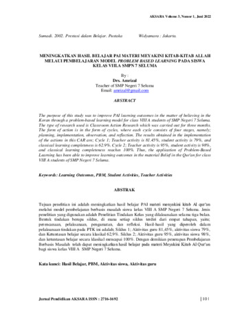 Amrizal, Amrizal (2022) Meningkatkan hasil belajar PAI materi meyakini kitab-kitab Allah melalui pembelajaran model problem based learning pada siswa kelas VIII.A SMPN 7 Seluma. Jurnal Pendidikan AKSARA, 3 (1): 2. pp. 10-16. ISSN 2716-1692