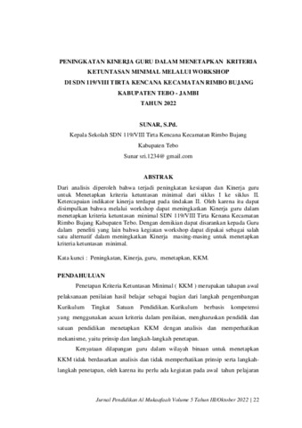 Dari analisis diperoleh bahwa terjadi peningkatan kesiapan dan Kinerja guru untuk Menetapkan kriteria ketuntasan minimal dari siklus I ke siklus II. Ketercapaian indikator kinerja terdapat pada tindakan II. Oleh karena itu dapat disimpulkan bahwa melalui workshop dapat meningkatkan Kinerja guru dalam menetapkan kriteria ketuntasan minimal SDN 119/VIII Tirta Kenana Kecamatan Rimbo Bujang Kabupaten Tebo. Dengan demikian dapat disarankan kepada Guru dalam peneliti yang lain bahwa kegiatan workshop dapat dipakai sebagai salah satu alternatif dalam meningkatkan Kinerja masing-masing untuk menetapkan kriteria ketuntasan minimal.