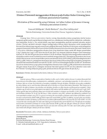 Inawati, Eddijanto and Ratih, Restiani and Dwi, Aditiyarini (2022) Elisitasi flavonoid menggunakan kitosan pada kultur kalus ginseng Jawa (Talinum paniculatum Gaertn.). Sciscitatio: Journal for Biological Science, 3 (2): 5. pp. 90-99. ISSN 2721-5180