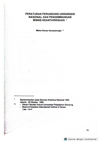 Mieke, Komar Kantaatmadja (1995) Peraturan perundang-undangan nasional dan pengembangan bisnis keantariksaan. In: Seminar Antariksa Nasional 1995, 26 Oktober 1995, Jakarta.