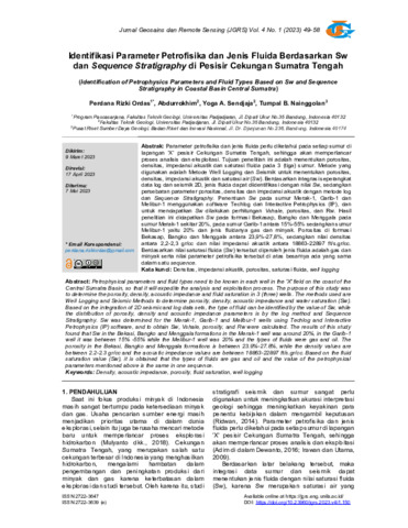 Perdana, Rizki Ordas and Abdurrokhim, Abdurrokhim and Yoga, A. Sendjaja and Tumpal, B. Nainggolan (2023) Identifikasi parameter petrofisika dan jenis fluida berdasarkan Sw dan Sequence Stratigraphy di Pesisir Cekungan Sumatra Tengah. JGRS: Jurnal Geosains dan Remote Sensing, 4 (1): 6. pp. 49-58. ISSN 2722-3647