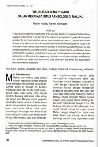 Marlon, Nicolay Ramon Ririmasse (2008) Visualisasi tema perahu dalam rekayasa situs Arkeologi di Maluku. Naditira Widya, 2 (1): 14. pp. 142-158. ISSN 1410 - 0932