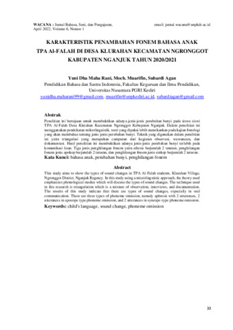 Yuni, Dha Maha Rani and Moch., Muarifin and Subardi, Agan (2022) Karakteristik penambahan fonem bahasa anak TPA Al-Falah di Desa Klurahan Kecamatan Ngronggot Kabupaten Nganjuk tahun 2020/2021. Wacana: Jurnal Bahasa, Seni, dan Pengajaran, 6 (1): 4. pp. 33-38. ISSN 2085-2053