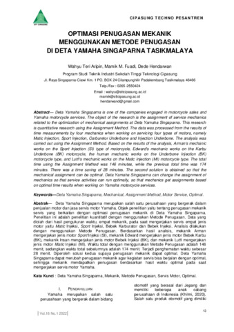 Deta Yamaha Singaparna merupakan salah satu perusahaan yang bergerak dalam penjualan motor dan jasa servis motor Yamaha. Objek penelitian yaitu tentang penugasan mekanik servis yang berkaitan dengan optimasi penugasan mekanik di Deta Yamaha Singaparna. Penelitian ini adalah penelitian kuantitatif dengan menggunakan Metode Penugasan. Data yang diolah dari hasil pengukuran waktu, empat mekanik, pada saat mengerjakan servis empat jenis motor yaitu Matic Injeksi, Sport Injeksi, Bebek Karburator dan Bebek Injeksi. Analisis dilakukan dengan menggunakan Metode Penugasan. Berdasarkan hasil analisis, mekanik Arman mengerjakan jenis motor Sport Injeksi (SI), mekanik Edward mengerjakan jenis motor Bebek Karbu (BK), mekanik Insan mengerjakan jenis motor Bebek Injeksi (BK), dan mekanik Lutfi mengerjakan jenis motor Matic Injeksi (MI). Waktu total dengan menggunakan Metode Penugasan adalah 146 menit, sedangkan waktu total sebelumnya adalah 174 menit. Terjadi penghematan waktu sebesar 28 menit. Diperoleh solusi kedua supaya penugasan mekanik dapat optimal. Deta Yamaha Singaparna dapat merubah penugasan mekanik agar kegiatan servis bisa berjalan dengan optimal, sehingga mekanik mendapatkan penugasan berdasarkan hasil waktu optimal pada saat mengerjakan servis motor Yamaha.