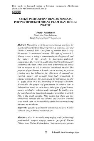 Fredy, Andrianto (2022) Sanksi pembunuhan dengan sengaja perspektif hukum pidana Islam dan hukum positif. Al-Mazaahib: Jurnal Perbandingan Hukum, 10 (1): 4. pp. 79-105. ISSN 2302-7355