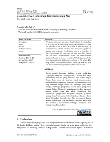 Antonio, Julio Putra (2021) Ziarah: Mencari satu imaji dari seribu imaji-nya (Sahabat, imaji kristiani). Focus, 2 (2): 2. pp. 79-88. ISSN 2722-6336