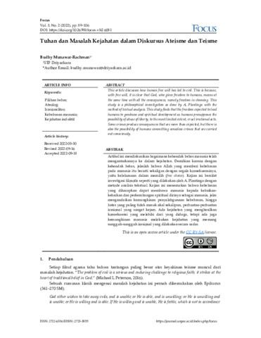 Budhy, Munawar Rachman (2022) Tuhan dan masalah kejahatan dalam diskursus ateisme dan teisme. Focus, 3 (2): 4. pp. 89-106. ISSN 2722-6336