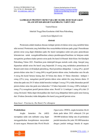 Yunita, Eliyani (2022) Gambaran protein urine pada ibu hamil di Rumah Sakit Islam Siti Khadijah Palembang tahun 2021. Journal of Midwifery Care, 3 (1): 1. pp. 1-10. ISSN 2774-4167