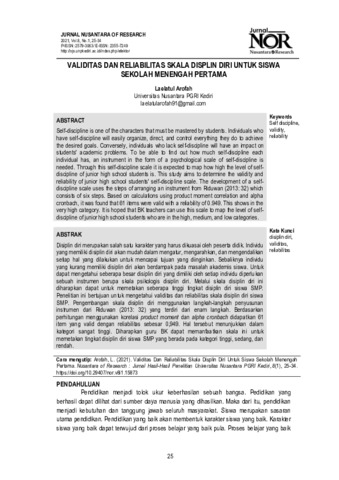 Laelatul, Arofah (2021) Validitas dan reliabilitas skala displin diri untuk siswa sekolah menengah pertama. Nusantara of Research: Jurnal Hasil-hasil Penelitian Universitas Nusantara PGRI Kediri, 8 (1): 3. pp. 25-34. ISSN 2579-3063