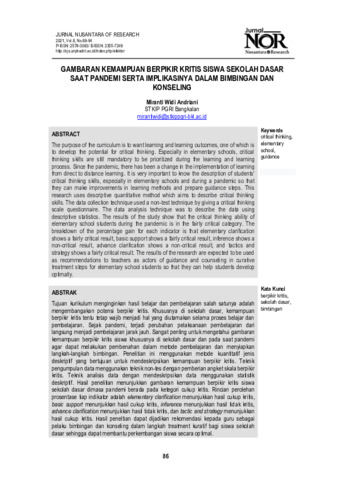 | Uncontrolled Keywords: | Berpikir kritis, sekolah dasar, bimbingan, pandemis |