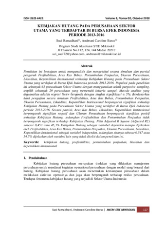 Ramadhani, Suci and Barus, Andreani Caroline (2018) Kebijakan hutang pada perusahaan sektor utama yang terdaftar di Bursa Efek Indonesia periode 2013-2016. Jurnal Wira Ekonomi Mikroskil : JWEM, 8 (2): 2. pp. 127-138. ISSN 2088-9607