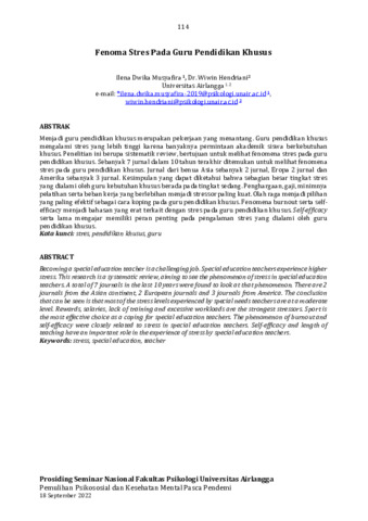 Ilena, Dwika Musyafira and Wiwin, Hendriani (2023) Fenoma stres pada guru pendidikan khusus. In: The International Conference on Health Technology.