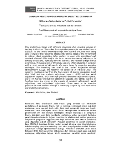 Ni Nyoman, Wahyu Lestarina and Dwi, Purwantini (2023) Gambaran proses adaptasi mahasiswa baru stikes di Surabaya. MAHESA : Malahayati Health Student Journal, 3 (3): 17. pp. 761-769. ISSN 2746-198X