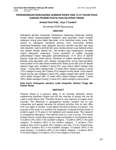 | Uncontrolled Keywords: | Kebugaran Jasmani, Letak Geografis, Dataran Tinggi dan Pesisir Pantai, Physical Fitness, Geographical location, Plateaus, Coastal zones |