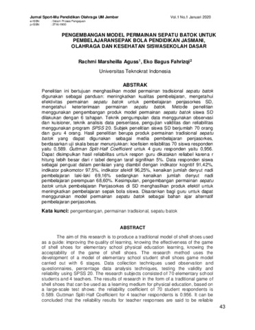 | Uncontrolled Keywords: | Pengembangan, Permainan tradisional, Sepatu batok, Physical education, Sports and health, Sepatu batok games |