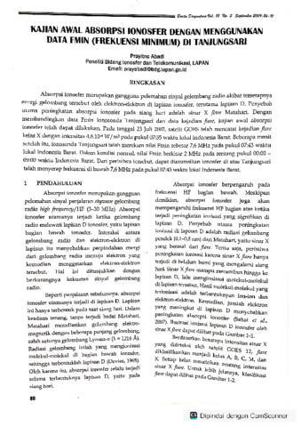 | Uncontrolled Keywords: | Absorpsi Ionosfer, Data FMIN, Sinyal gelombang radio |
