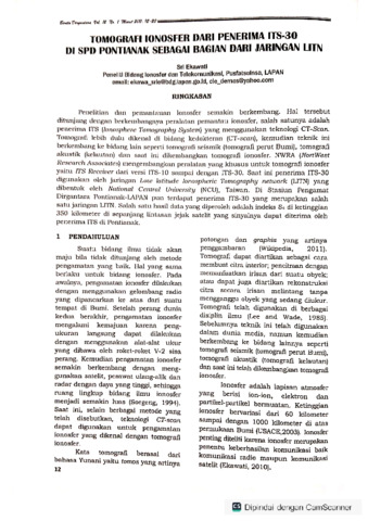 Sri, Ekawati (2011) Tomografi ionosfer dari penerima ITS-30 di SPD Pontianak sebagai bagian dari jaringan LITN. Berita Dirgantara Majalah Ilmiah Semi Populer, 12 (1): 3. pp. 12-20. ISSN 1411-8920