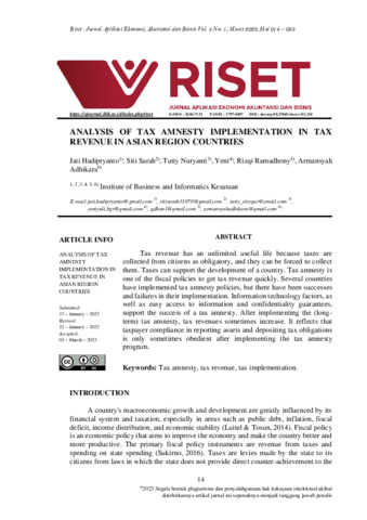 Jati, Hadipryanto and Siti, Sarah and Tutty, Nuryanti and Yeni, Yeni and Rizqi, Ramadhony and Armansyah, Adhikara (2023) Analysis of tax amnesty implementation in tax revenue in Asian region countries. Riset: Jurnal Aplikasi Ekonomi Akuntansi Dan Bisnis, 5 (1): 2. pp. 14-28. ISSN 2797-4057