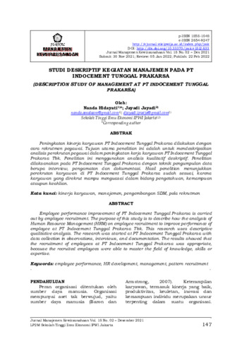 | Uncontrolled Keywords: | Kinerja Karyawan, Manajemen, Pengembangan SDM, Pola Rekrutmen |