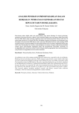 | Uncontrolled Keywords: | Prinsip keadilan, Emisi, Pembatasan kendaraan, Polusi, Emission of gas, Air pollution, Vehicles |