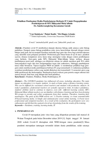 | Uncontrolled Keywords: | Pandemi, Pelatihan, Media pembelajaran, IT |