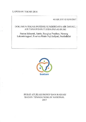 Sidauruk, Paston and Satrio, Satrio and Pratikno, Bungkus and Laksminingpuri, Neneng and Indiyati, Evarista Ristin Puji and Nurfadhlini, Nurfadhlini (2017) Laporan Teknis 2016: Dokumen Teknis Potensi Sumberdaya Air Danau, Air Tanah dan Fluida Panas Bumi. Technical Report. PAIR-BATAN.
