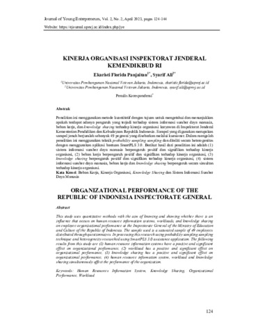 Ekaristi, Florida Panjaitan and Syarif, Ali (2023) Kinerja organisasi Inspektorat Jenderal Kemendikbud RI. JYE: Journal of Young Entrepreneurs, 2 (2): 10. pp. 124-144. ISSN 2964-8521