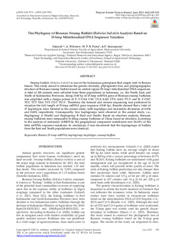 Suhardi, Suhardi and A., Wibowo and W. P. B., Putra and P., Summpunn (2023) The phylogeny of bornean swamp buffalo (Bubalus bubalis) analysis based on D-loop mitochondrial DNA sequence variation. Tropical Animal Science Journal, 46 (2): 1. pp. 139-145. ISSN 2615-787X