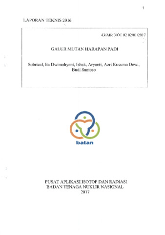 Sobrizal, Sobrizal and Dwimahyani, Ita and Ishak, Ishak and Aryanti, Aryanti and Dewi, Azri Kusuma and Santoso, Budi (2017) Laporan Teknis 2016: Galur Mutan Harapan Padi. Technical Report. PAIR-BATAN.