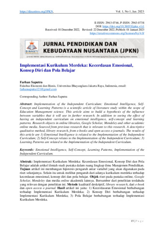 | Uncontrolled Keywords: | Kecerdasan Emosional, Konsep Diri, Pola Belajar, Implementasi Kurikulum Merdeka |