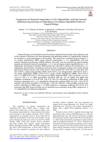 Despal, Despal and Yulianti, Y. I. and Zahera, R. and Agustiyani, I. and Rosmalia, A. and Afnan, I. M. and Zain, M. and Tanuwiria, U. H. (2023) Comparison of chemical composition, in vitro digestibility, and near infrared reflectance spectroscopy in estimating in situ rumen degradable protein of tropical foliage. Tropical Animal Science Journal, 46 (2): 10. pp. 211-220. ISSN 2615-787X