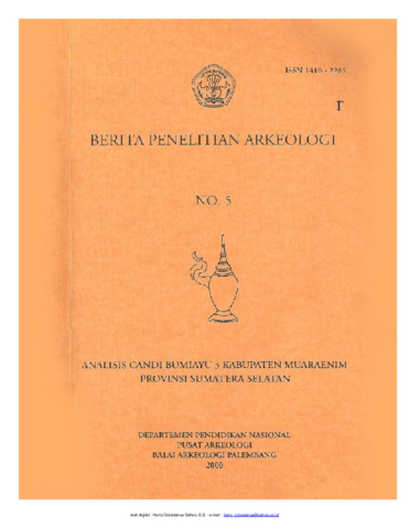 Tri, Marhaeni S. B. and Haris, Susanto and Sondang, M. Siregar and Retno, Purwanti (2000) Berita Penelitian Arkeologi No.5. Analisis candi Bumiayu 3 Kabupaten Muaraenim Provinsi Sumatera Selatan. Project Report. Balai Arkeologi Palembang, Palembang.