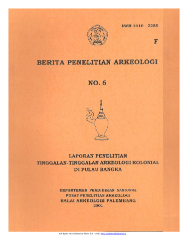 Aryandini, Novita and Budi, Wiyana (2001) Berita Penelitian Arkeologi No. 6. Laporan penelitian tinggalan-tinggalan arkeologi kolonial di Pulau Bangka. Project Report. Balai Arkeologi Palembang, Palembang.