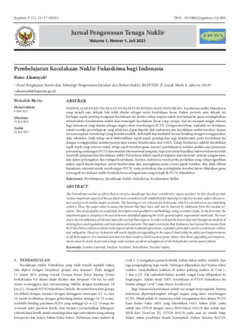 Kecelakaan nuklir Fukushima yang terjadi satu dekade lalu telah dinilai sebagai suatu kecelakaan besar. Dalam periode satu dekade ini berbagai aspek penting mengenai kecelakaan ini dinilai cukup mapan untuk pembelajaran guna meningkatkan infrastruktur keselamatan nuklir dan mencegah kecelakaan besar yang serupa. Hal ini menjadi sangat relevan bagi Indonesia yang dinilai sebagai negara akan membangun PLTN. Dengan demikian, makalah ini bertujuan untuk menilai pembelajaran yang telah dan dapat dipetik oleh Indonesia atas kecelakaan nuklir tersebut. Kajian ini menerapkan metodologi yang bersifat analitik, deskriptif dan kualitatif secara bertahap dengan menggunakan data sekunder. Pada tahap awal diidentifikasi aspek-aspek penting dari segi keselamatan pada kecelakaan itu dengan menggunakan standar persyaratan umum keselamatan dari IAEA. Tahap berikutnya adalah identifikasi topik-topik yang relevan untuk setiap aspek tersebut guna merinci pembelajaran melalui analisis atas peraturan perundang-undangan (PUU) dan standar internasional yang ada. Paper ini menyimpulkan bahwa Indonesia telah memetik pelajaran dari kecelakaan nuklir Fukushima dalam aspek perjanjian internasional, prinsip pengawasan, dan dalam pencegahan dan mitigasi kecelakaan. Namun, Indonesia masih perlu perbaikan yang cukup signifikan dalam aspek kepemimpinan untuk keselamatan dan peningkatan pada semua aspek tersebut. Jika telah dibuat keputusan nasional untuk membangun PLTN, maka perbaikan dan peningkatan tersebut harus dilakukan guna mencegah kecelakaan nuklir berskala besar sebagaimana yang terjadi di PLTN Fukushima.