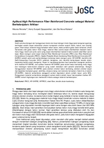 Wisena, Perceka and Herry, Suryadi Djayaprabha and Sisi, Nova Rizkiani (2022) Aplikasi high performance fiber reinforced concrete sebagai material berkelanjutan: Ikhtisar. Journal of Sustainable Construction, 1 (2): 4. pp. 33-42. ISSN 2964-4437