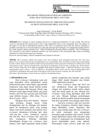 Anggi, Wahyuningsi and Aliyah, Shahab (2022) Revamping pemasangan isolasi asbestos pada heat exchanger shell and tube. Jurnal Teknik Patra Akademika, 13 (2): 4. pp. 98-103. ISSN 2089-5925