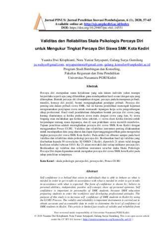 Yuanita, Dwi Krisphianti and Nora, Yuniar Setyaputri and Galang, Surya Gumilang (2020) Validitas dan reliabilitas skala psikologis percaya diri untuk mengukur tingkat percaya diri siswa SMK Kota Kediri. PINUS: Jurnal Penelitian Inovasi Pembelajaran, 6 (1): 1. pp. 57-65. ISSN 2621-2390