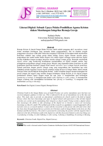Sudiarjo, Purba (2022) Literasi digital: sebuah upaya pelaku pendidikan agama Kristen dalam membangun integritas remaja gereja. Jurnal Shanan, 6 (2): 4. pp. 183-200. ISSN 2549-8061