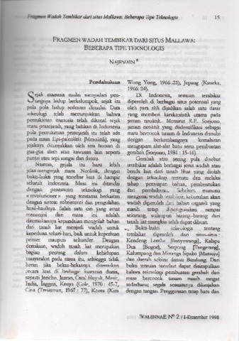 Najemain, Najemain (1998) Fragmen wadah tembikar dari situs Mallawa: Beberapa tipe teknologis. Walennae, I (2). pp. 15-34. ISSN 1411-0573