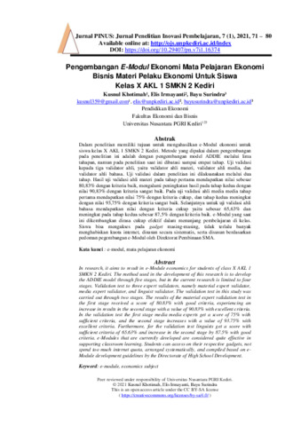 Kusnul, Khotimah and Elis, Irmayanti and Bayu, Surindra (2021) Pengembangan e-modul ekonomi mata pelajaran ekonomi bisnis materi pelaku ekonomi untuk siswa kelas X AKL 1 SMKN 2 Kediri. PINUS: Jurnal Penelitian Inovasi Pembelajaran, 7 (1): 7. pp. 71-80. ISSN 2621-2390