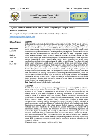 Hermawan, Puji Yuwana (2022) Tinjauan literatur pemanfaatan nuklir dalam pengurangan sampah plastik. Jurnal Pengawasan Tenaga Nuklir, 2 (1): 6. pp. 28-35. ISSN 2798-513X