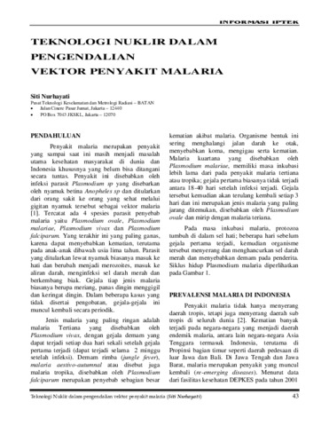 Siti, Nurhayati (2006) TEKNOLOGI NUKLIR DALAM PENGENDALIAN VEKTOR PENYAKIT MALARIA. Bulletin ALARA, 8 (1). pp. 43-48. ISSN 1410-4652
