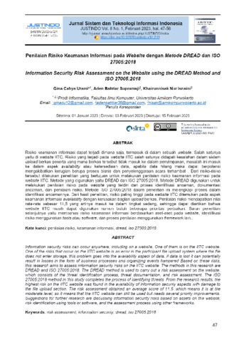 Gina, Cahya Utami and Aden, Bahtiar Supramaji and Khairunnisak, Nur Isnaini (2023) Penilaian risiko keamanan informasi pada website dengan metode DREAD dan ISO 27005:2018. Justindo (Jurnal Sistem dan Teknologi Informasi Indonesia), 8 (1): 6. pp. 47-56. ISSN 2502-5724