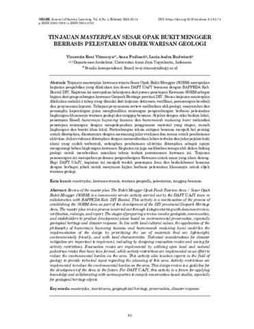 Vitasurya, Vincentia Reni and Pudianti, Anna and Rudwiarti, Lucia Asdra (2023) Tinjauan masterplan sesar opak bukit mengger berbasis pelestarian objek warisan geologi. SHARE: Journal of Service-Learning, 9 (1): 9. pp. 65-74. ISSN 2338-7866