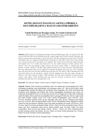 Yakub Hendrawan, Perangin-Angin and Tri Astuti, Yeniretnowati (2022) Keteladanan pasangan Akwila Priskila dan implikasinya bagi suami istri Kristen. BONAFIDE: Jurnal Teologi dan Pendidikan Kristen, 3 (1): 2. pp. 21-36. ISSN 2722-4473