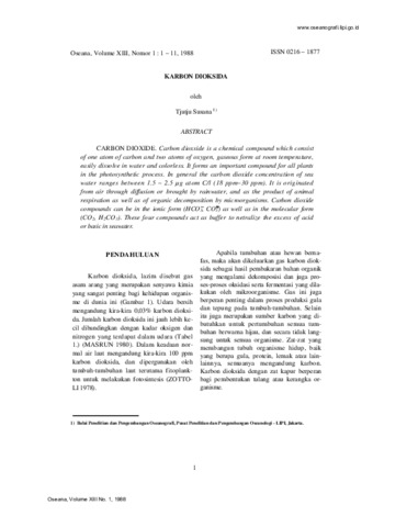 Tjutju, Susana (1988) Karbon dioksida. OSEANA, XIII (1): -. pp. 1-11. ISSN 0216-1877