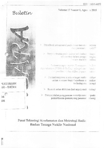 | Subjects: | Taksonomi BATAN > Keselamatan dan Keamanan Nuklir Taksonomi BATAN > Keselamatan dan Keamanan Nuklir Taksonomi BATAN > Keselamatan dan Keamanan Nuklir > Keselamatan Radiasi dan Kesehatan kerja Taksonomi BATAN > Keselamatan dan Keamanan Nuklir > Keselamatan Radiasi dan Kesehatan kerja |