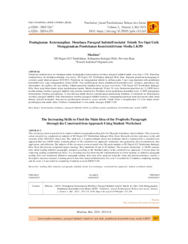 Muslina, Muslina (2023) Peningkatan keterampilan membaca paragraf induktif melalui teknik tes opsi unik menggunakan pendekatan konstruktivisme media LKPD. Jurnal PEMBAHAS: Pembelajaran Bahasa dan Sastra, 2 (3): 3. pp. 303-314. ISSN 2809-5367