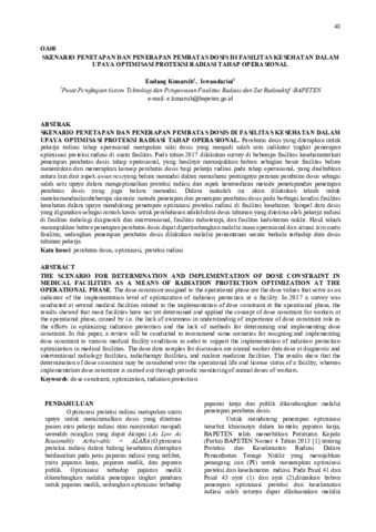 Endang, Kunarsih and Iswandarini, Iswandarini (2018) Skenario penetapan dan penerapan pembatas dosis di fasilitas kesehatan dalam upaya optimisasi proteksi radiasi tahap operasional. In: Prosiding seminar keselamatan nuklir tahun 2018, 2 August, Malang.